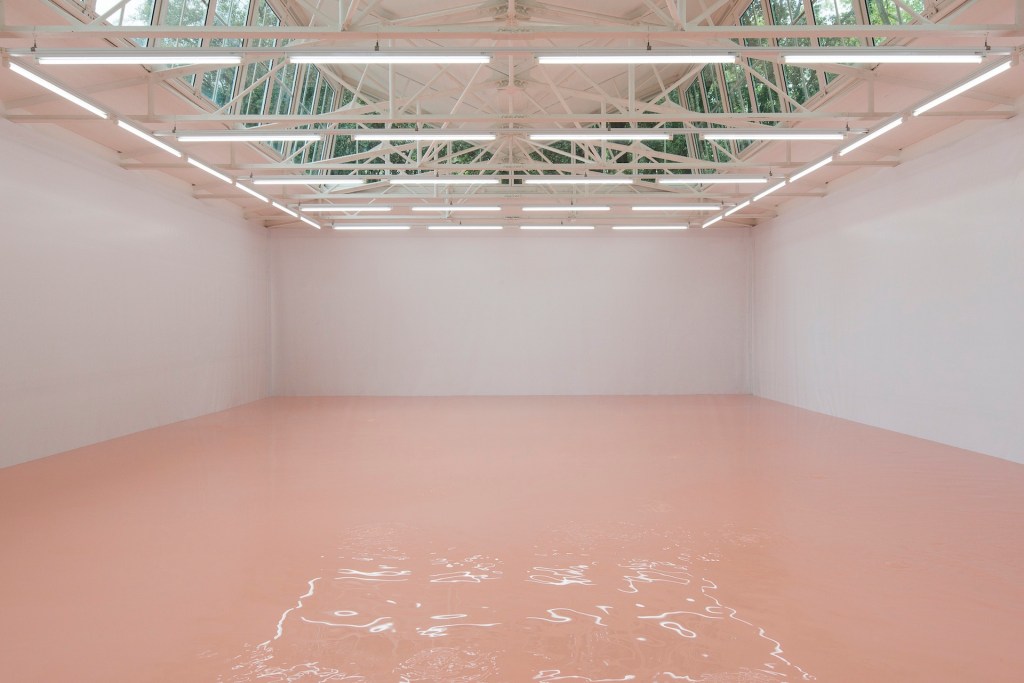 Perhaps one of Rosenkranz’s most recognized installations, “Our Product” took center stage at the Swiss Pavilion during the 56th Venice Biennale. This immersive work filled the pavilion with a monochromatic pink light, simulating the average skin tone of northern Europeans, set against a vast pool of silicone liquid that mirrored the chemical composition of the human body. The installation confronted visitors with the artificial boundaries of identity and nationality, wrapped in an unsettlingly organic ambiance. “Our Product” stands as a powerful statement on the fluidity of identity in a globalized world, challenging the viewer to question the very foundations of self and otherness.