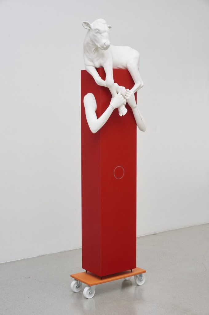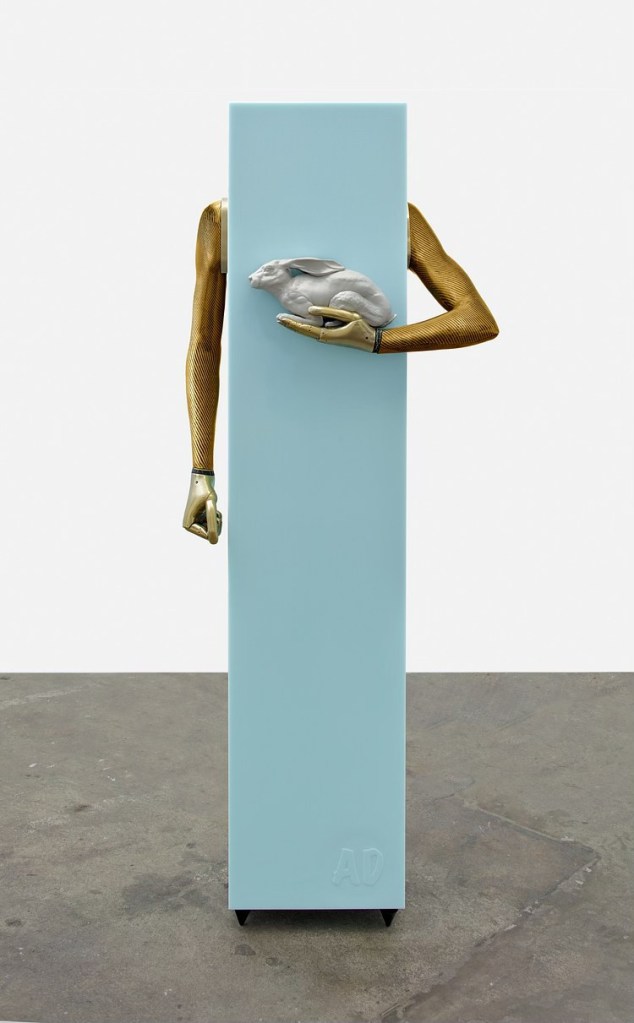 ↑ Aleksandra Domanovic, ‘Fatima’, 2013–14, Laser sintered PA plastic, polyurethane, Soft-Touch & brass finish, acrylic glass, 157 x 30 x 30 cm, Courtesy Galerie Tanya Leighton