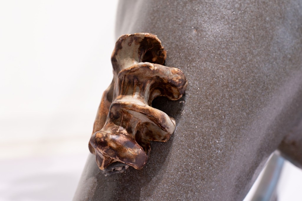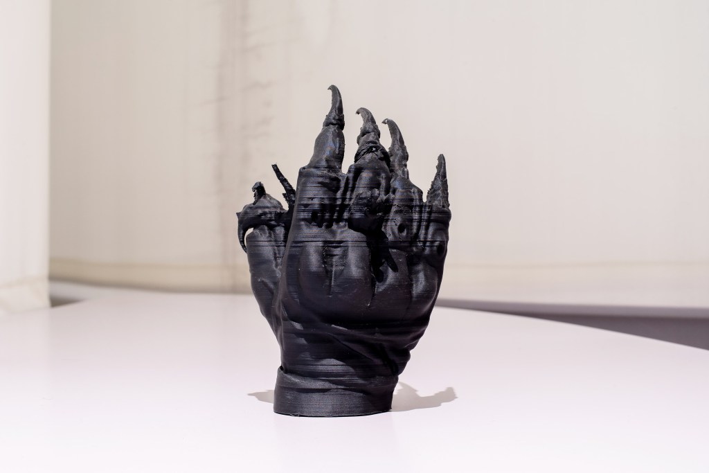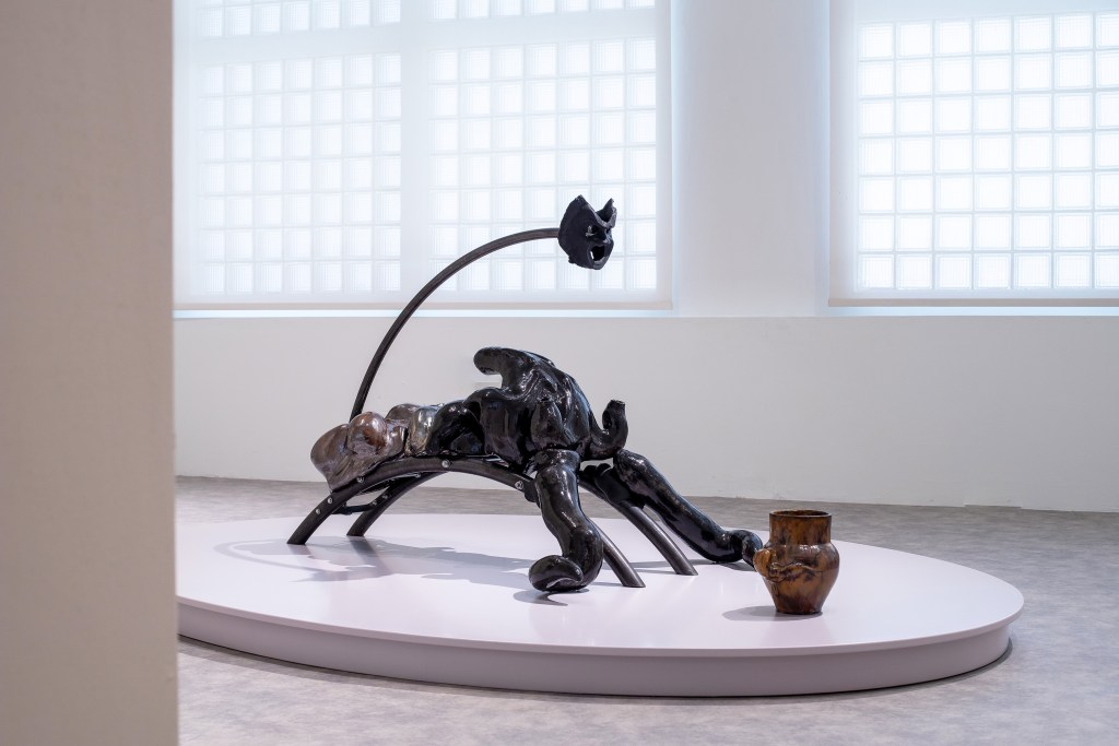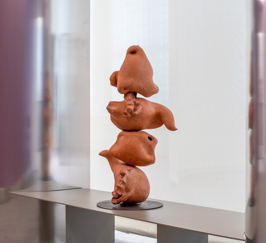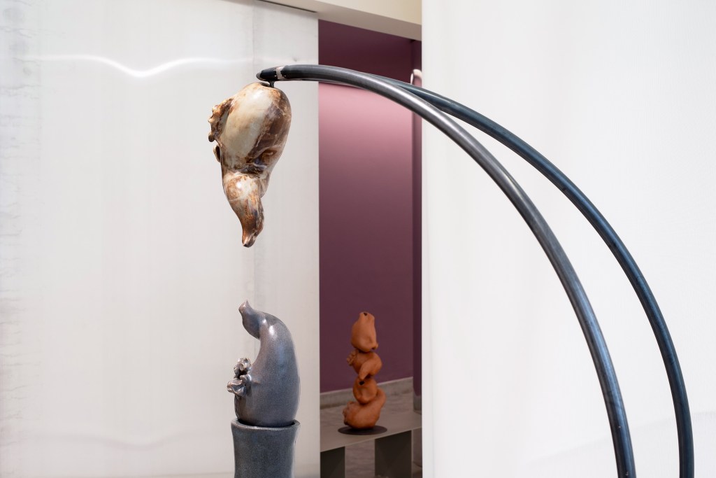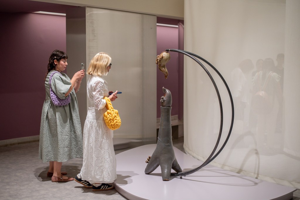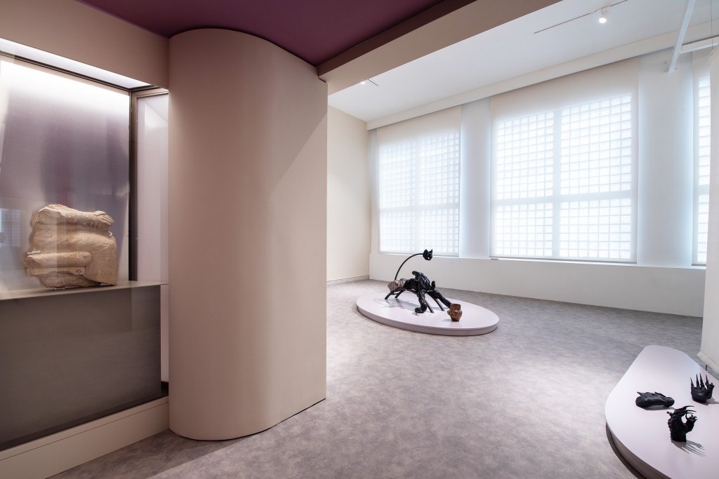 Αccording to the curatorial text Ancient artefacts from the Department of Antiquities’ collections and contemporary artworks coexist within a timeless, intricate environment. Materials such as clay, metal, stone, glazes, prints, 3D printing materials, and algorithmic entities—whose semiotics resonate with younger generations—are blended together in this hybrid space. The themes of love and death mark pivotal transitions in an immersive journey of the (META)human as they move toward virtual realms, transcending physical reality.