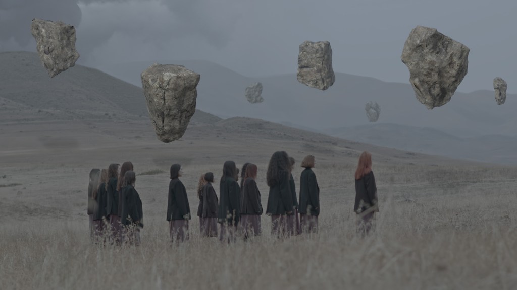 We reconsider the force of folklore and old ideological convictions in a culture where the mother refuses to give her child to war. The lullaby runs through the entire video, reinterpreted by contemporary musicians and a choir. Nineteen women move through a desert—historically a battlefield—or are locked in a dark cave. At first glance, the landscape is boundless, yet you can’t leave it. Just as the walls of a dark temple may not be a prison but a refuge, our women are confined there, as if inside their grief.