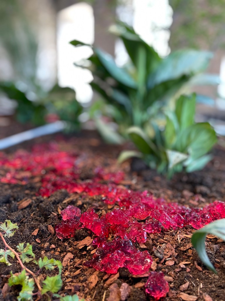 The project was first realized physically at Futuro Gallery, Nizhny Novgorod, Russia. We built a large flowerbed, planted it with trees and plants, similar to a park. For almost a month, you could watch the hydrogel slowly disappear. It was a new experiment for the viewers and us. By the end of the exhibition, the hydrogel had almost completely vanished, though in some places tiny black specks remained. Perhaps in natural conditions—on a farm or in outdoor beds—it needs a bit more time to degrade fully.