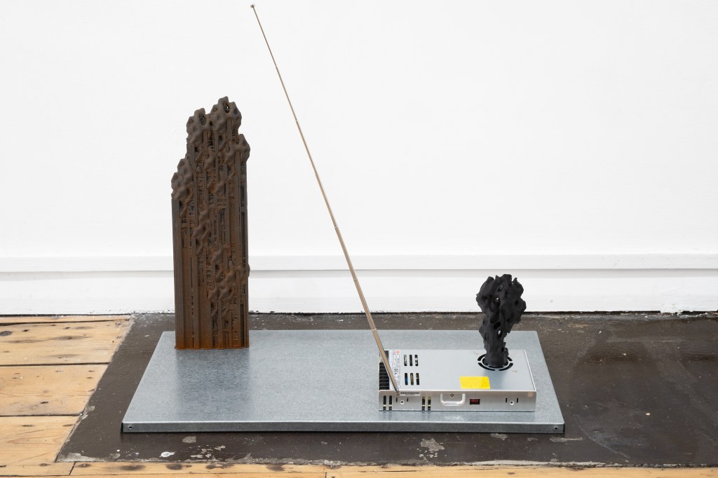 Title: 1:4:9, 2024, 3D printed-PLA/PVA/PETG, power supply, Aerial Antenna, Metal box, 24x12x35 cm.